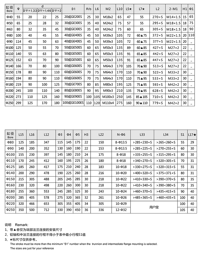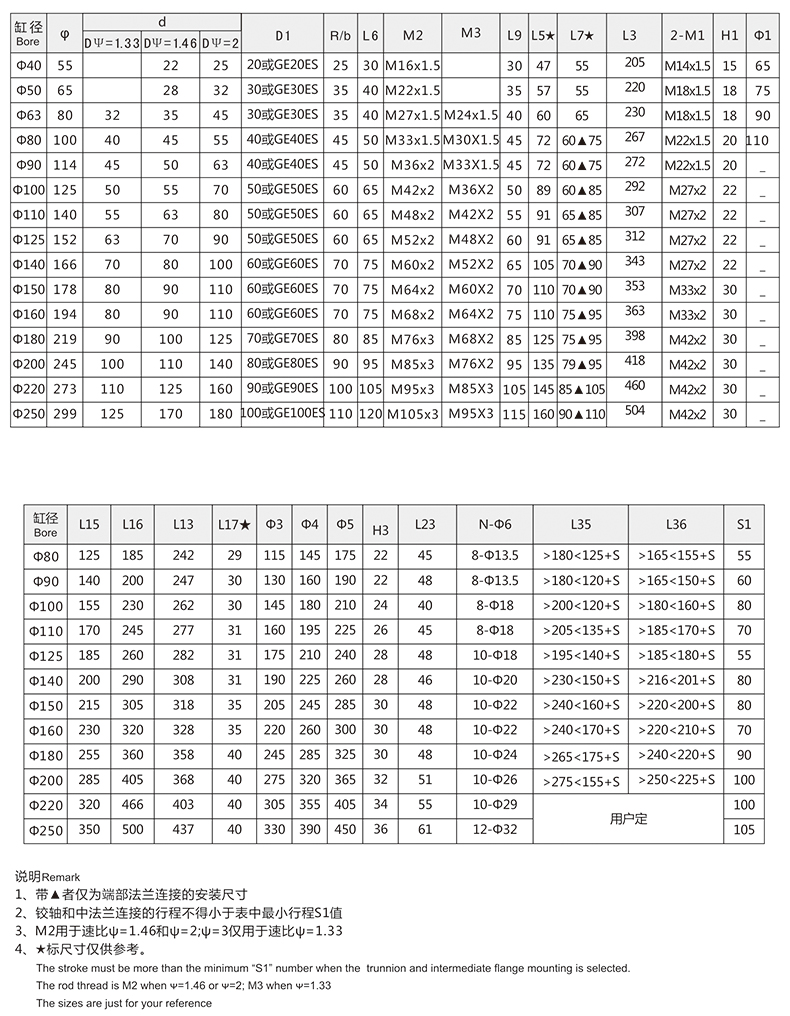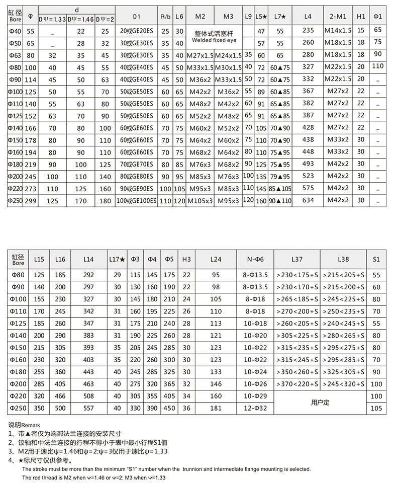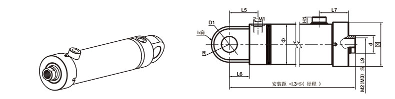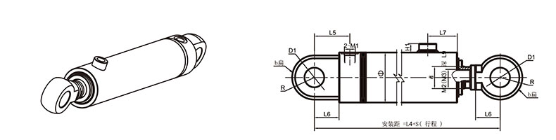 活塞桿端為內螺紋桿頭耳環(huán)連接