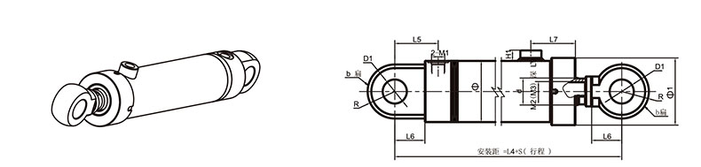 活塞桿端為外螺紋桿頭耳環(huán)連接